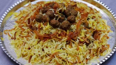 طرز تهیه رشته پلو مجلسی با گوشت قلقلی