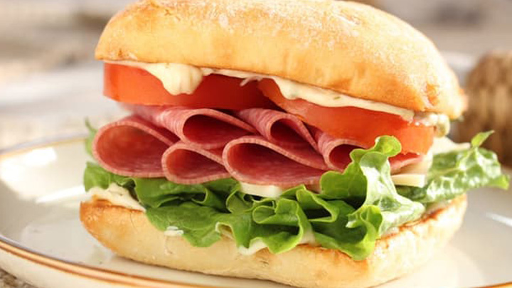 - در صورت تمایل میتوانید سالامی را هم در تابه کمی تفت دهید و سپس در ساندویچ بگذارید.