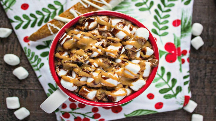 مرحله پنجم: هات چاکلت بادام زمینی را تزئین و سرو کنید