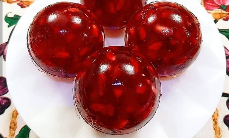 بعد از ۶ ساعت توپهای ژلهای انار آماده هستند. آنها را از قالب بیرون آورده و سرو کنید.