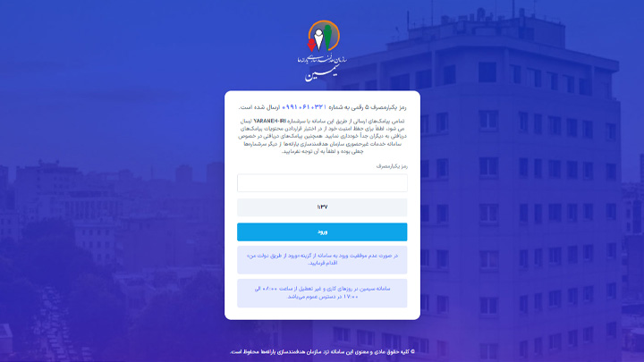 یک رمز یکبار مصرف (OTP) به شماره تلفن همراهی که به نام سرپرست خانوار ثبت شده است، پیامک میشود. این رمز را در کادر مربوطه وارد کرده و دکمه ورود را بزنید.